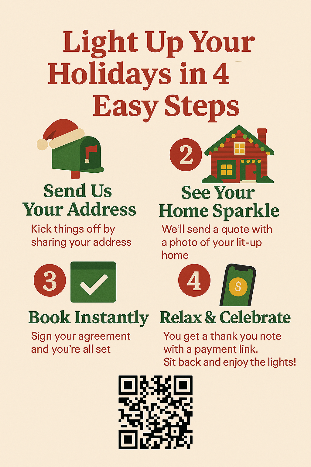 Transform your home or business into a holiday masterpiece with our full-service Christmas light displays. Our professionally trained technicians handle everything — ensuring your lights shine bright all season long. With regular inspections and prompt repairs, we keep your display flawless and worry free.